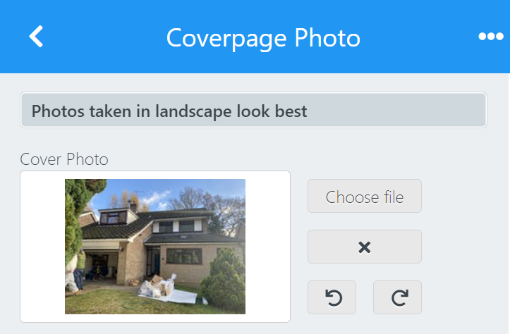 Take a suitable photo of the building for your cover page and give it an (optional) caption.